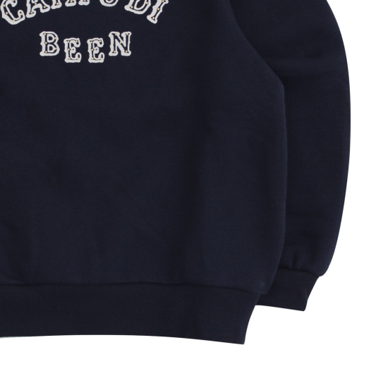 선명하고 클린한 네이비 컬러의 맨투맨 티셔츠 아이템입니다.