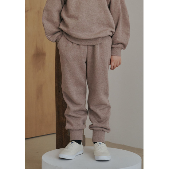 부드러운 다이마루 소재로 제작된 브라운 컬러 조거팬츠입니다. 밑단의 립 부분을 포인트로 디자인해, 여성스러우면서도 트렌디한 발레코어 스타일 실루엣을 연출해 줍니다. BZ58TS02BN과 셋업으로 매치하면 편안하면서도 스타일리시한 룩이 완성되며, 베이직한 티셔츠들과도 손쉽게 코디할 수 있어 활용도가 높은 아이템입니다. 유연한 소재와 여유 있는 핏으로 아이가 편안하게 입을 수 있어 데일리 팬츠로 추천드립니다.