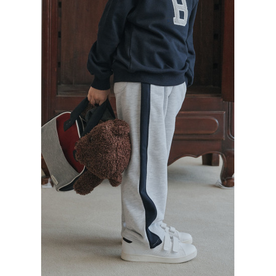 사이드 배색으로 포인트를 준 다이마루 팬츠입니다. 멜란지 그레이와 네이비 컬러로 배색하여 유니크함을 더했습니다. 부드럽고 말랑함이 돋보이는 소재로 제안하여 트렌디하면서 편안한 캐주얼룩을 다양하게 연출할 수 있는 아이템입니다. 밑단을 스트링으로 조여서 조거형태의 실루엣으로 스타일링할 수도 있으며, 일자라인으로 떨어뜨려 시크하게 연출할 수 있습니다. BZ57TS01GY,TS02NV와 후드 셋업으로 연출하거나, 라운드 티셔츠와도 다양하게 캐주얼룩을 제안할 수 있습니다.