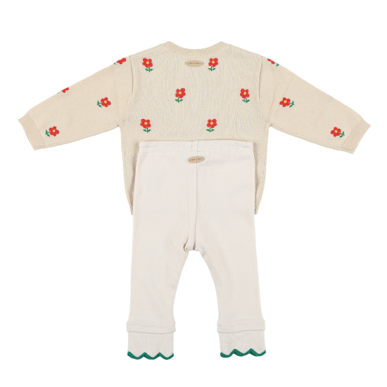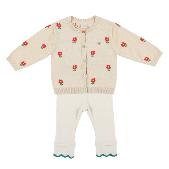 귀엽고 사랑스러운 꽃 쟈가드를 포인트로 준 니트 상하레깅스 끝에 둥근 꽃잎을 연상케 하는 스칼럽 시보리로사랑스러운 스타일의 유아 상하복 입니다. 배송메세지란에 메모를 남기시면 선물포장 됩니다.