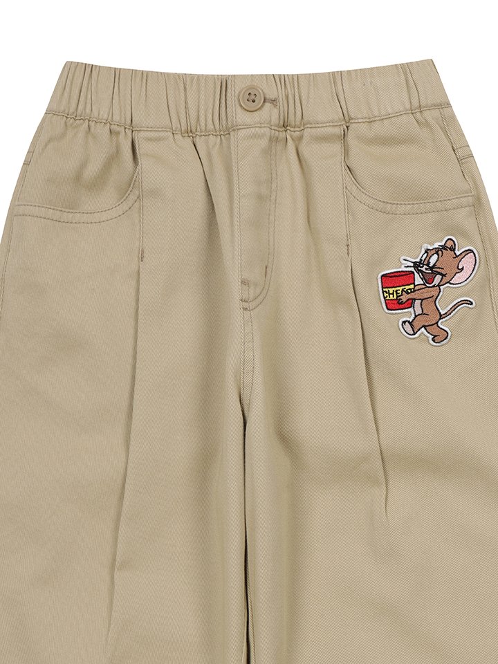 3. 핀턱 디테일과 앞부분의 제리 와펜, 뒷주머니의 직자수 레터링의 톰과제리 콜라보 아이템