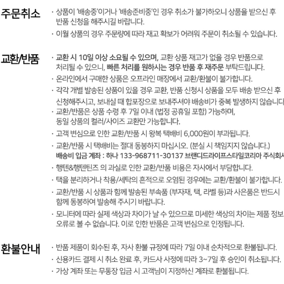 특이 사항  배송, 변경, 반품 환불에 대한 문의는 위 연락처로 문의 주세요.
