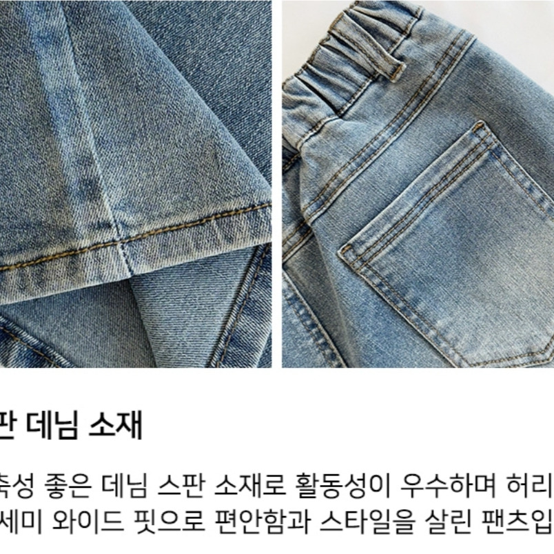 행텐주니어모다아울렛틴즈 풀밴딩 세미와이드핏 데님팬츠 더스티블루 294(14530-0