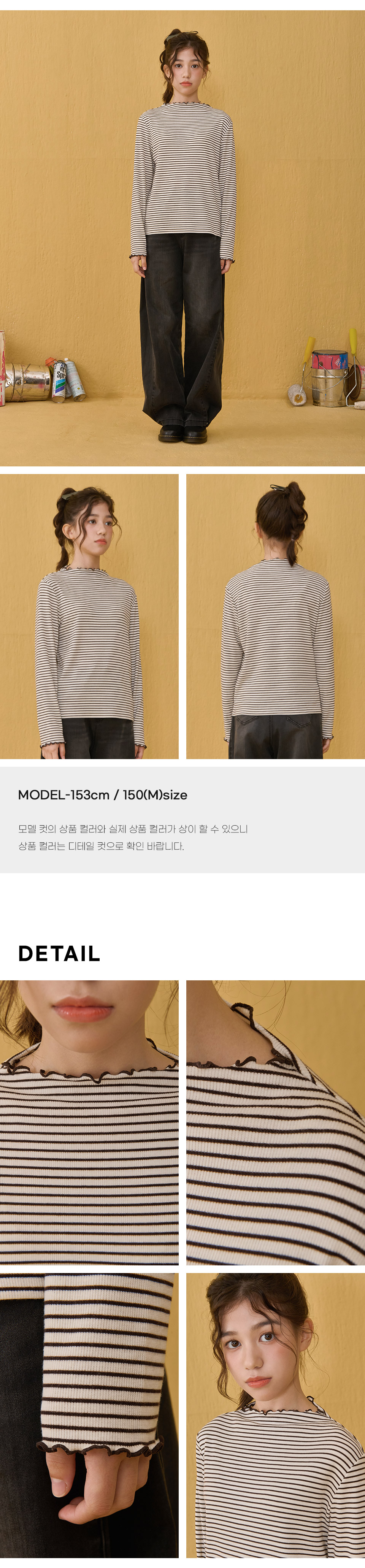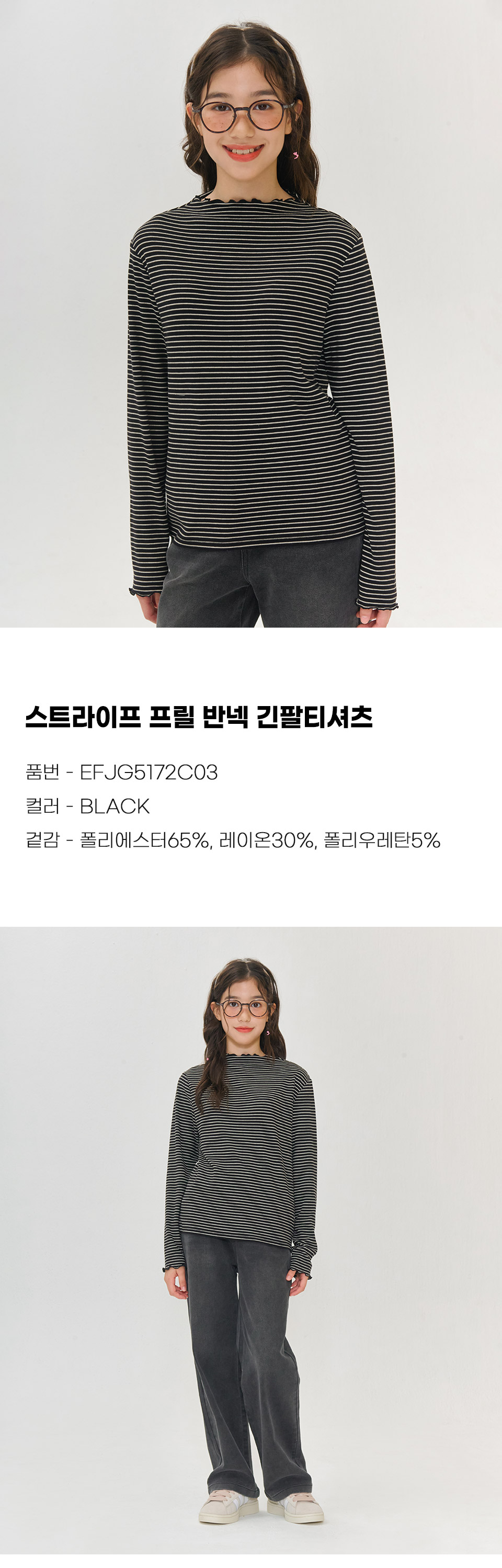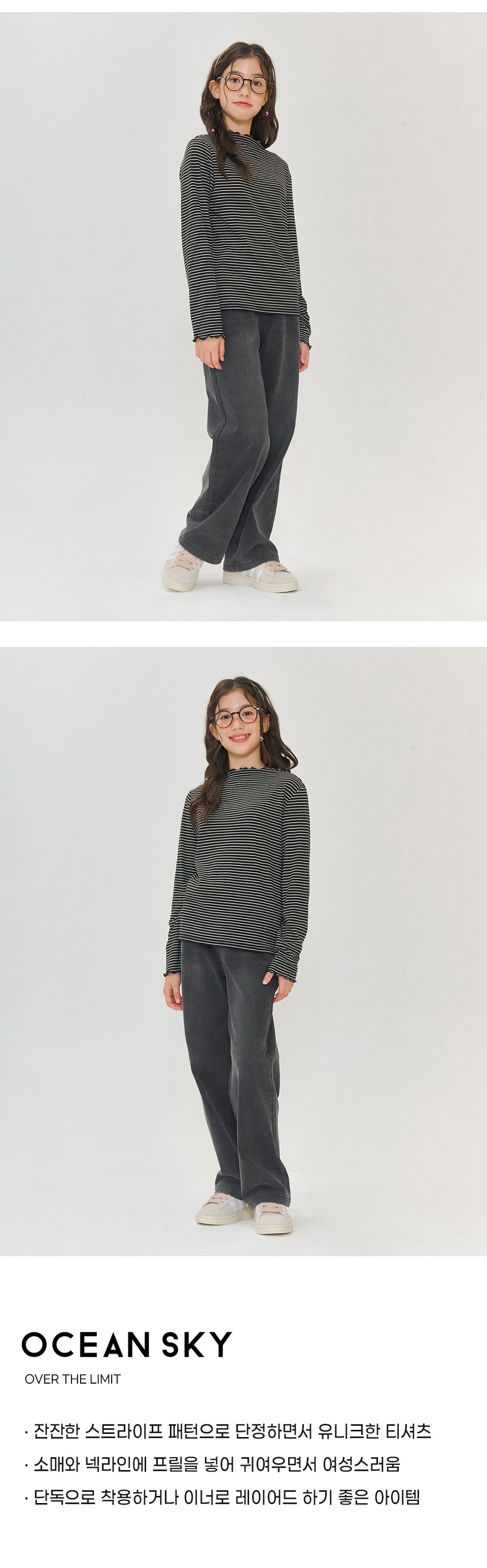 보리보리/오션스카이 여아 프릴 반넥 스트라이프 긴팔티셔츠