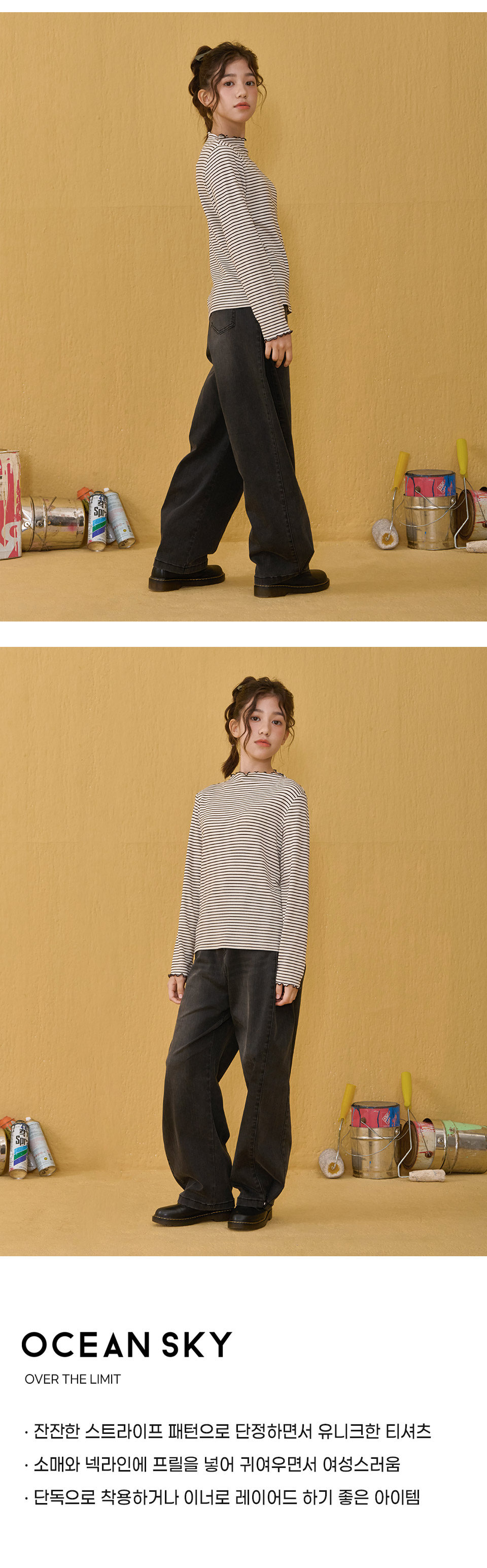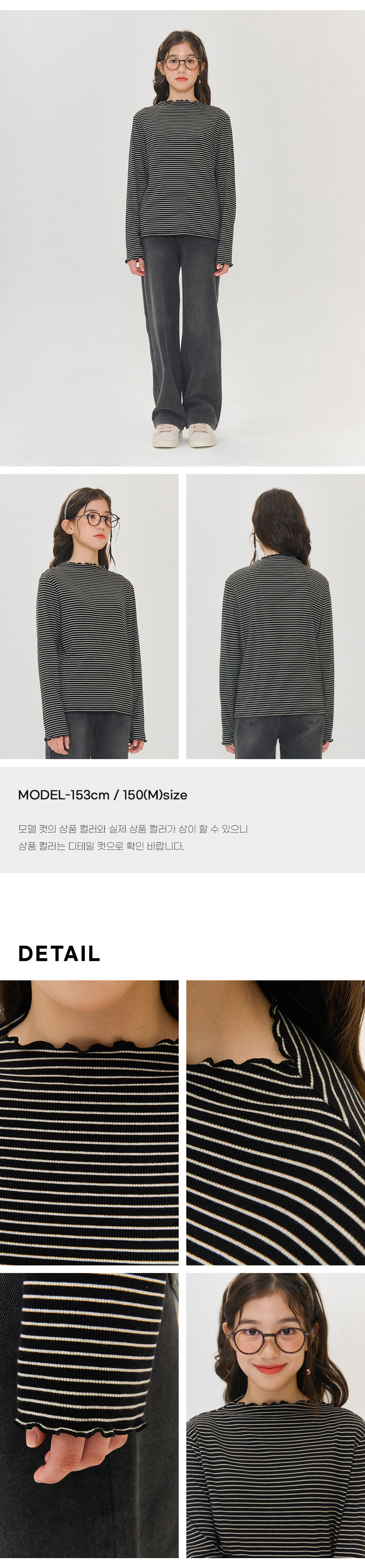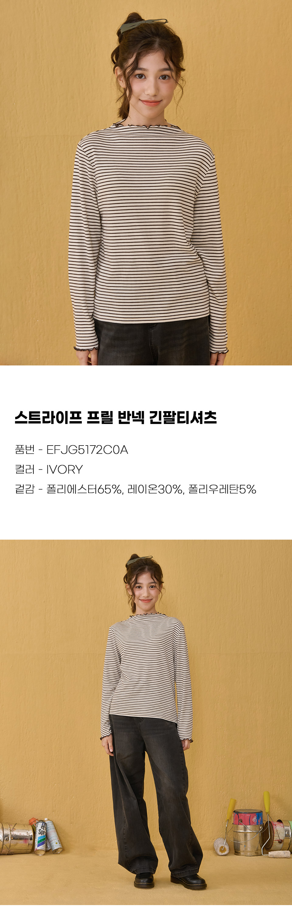 보리보리/오션스카이 여아 프릴 반넥 스트라이프 긴팔티셔츠