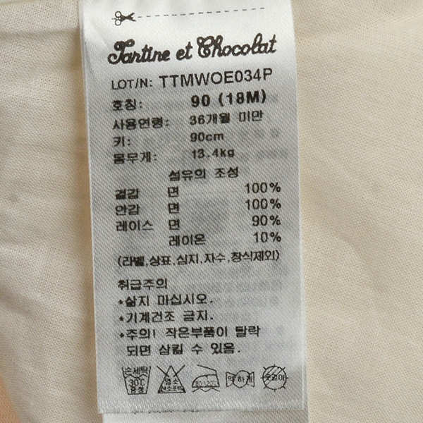 세탁방법 및 취급시 주의사항 : 삶지 마십시오. 기계건조 금지. 주의! 작은 부품이 탈락되면 삼킬 수 있음.