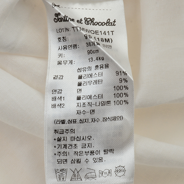 세탁방법 및 취급시 주의사항 : 삶지 마십시오. 기계건조 금지. 주의! 작은 부품이 탈락되면 삼킬 수 있음.
