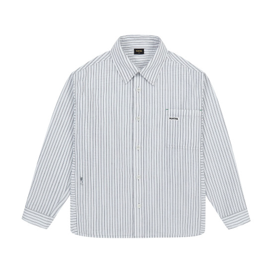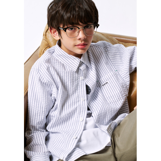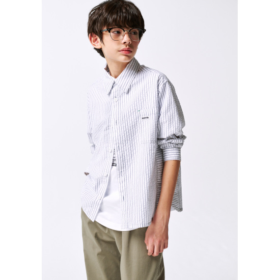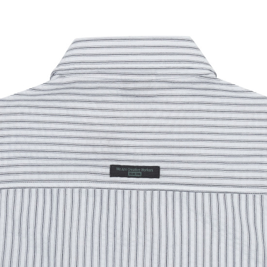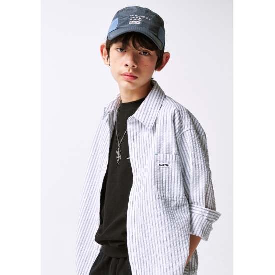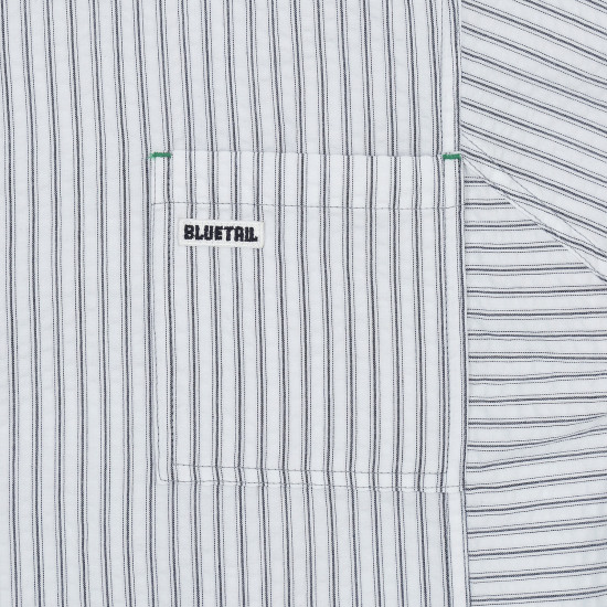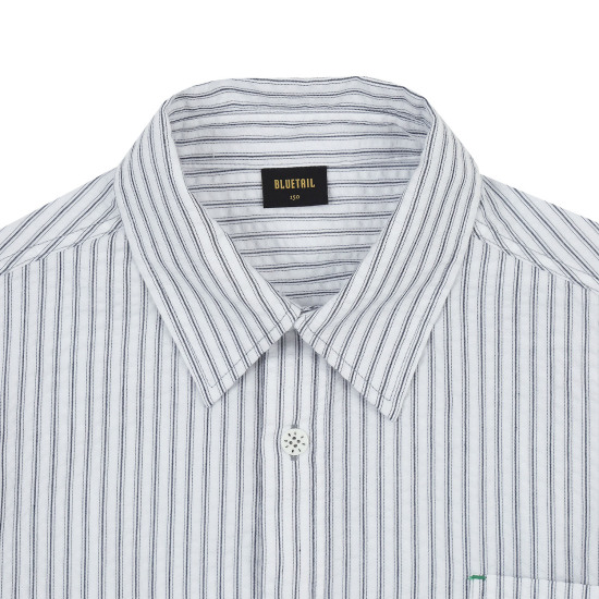 시어서커 소재의 세로 스트라이프 패턴으로 스마트한 스트릿 감성의 카라 셔츠입니다. 앞뒤 몸판 절개를 주고 옆선에 스트라이프 결을 가로로 사용한 세미 오버핏으로 제안한 상품입니다. 블루테일로고 와펜 포인트로 스트릿한 포인트를 주었습니다.