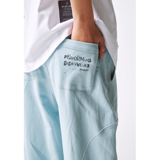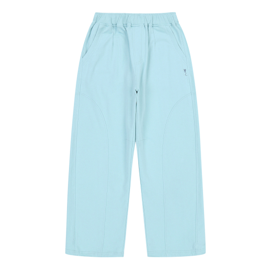 민트 컬러가 유니크한 와이드 핏의 스웻 팬츠입니다. 바지 앞뒤로 곡선 절개와 다트를 주어 볼륨감 있는 트렌디한 핏을 연출하였습니다. AZA3TS02MT와 셋업으로 제안한 상품입니다. 밑단에 엘라스트링이 있어 다양한 스타일링을 연출하기 좋은 상품입니다.
