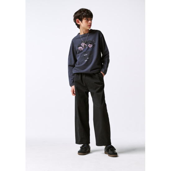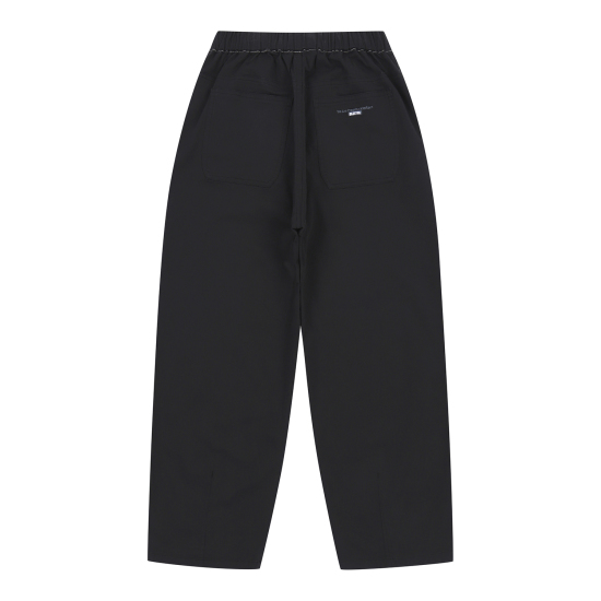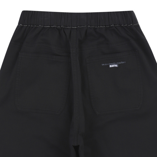 가볍고 부드러운 면 레이온 스판의 9부 기장 블랙 우븐 배기팬츠입니다. 전체 통고무줄로 가볍고 편안하게 제안하였습니다. 미니멀하면서 큼직한 아웃포켓이 멋스러운 아이템입니다. 발목까지 오는 기장감으로 트렌디한 어반 아웃도어룩을 연출할 수 있습니다. 기호에 따라 한 번이나 두 번 정도 롤업해서 웨어링할 수 있습니다.