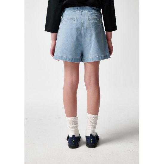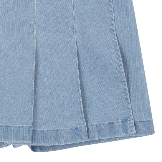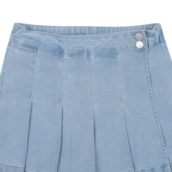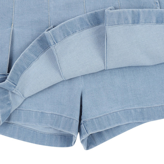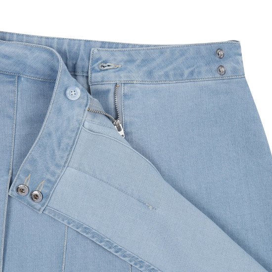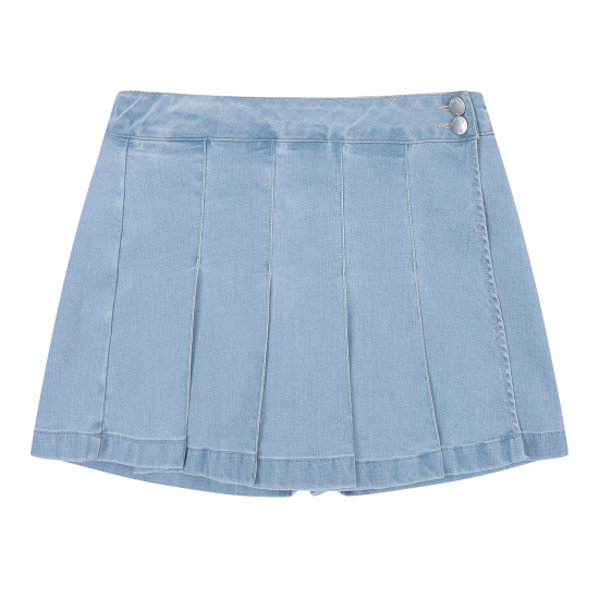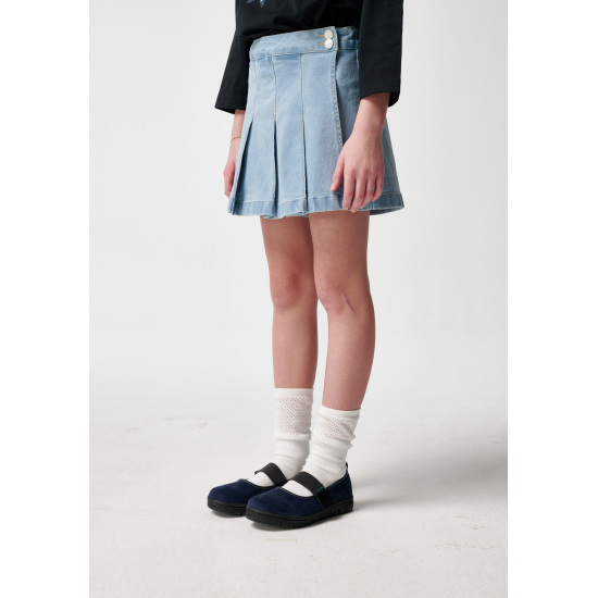 트렌디한 플리츠 스카이블루 데님 스커트 팬츠입니다. 스판 소재에 오픈으로 제안하여 편안하게 웨어링할 수 있는 아이템입니다. 날씬해보이면서도 다리가 길어보이도록 주름 간격과 겹쳐지는 분량을 적절히 조절하여 안정적인 핏으로 제안하였습니다. 걸리쉬&힙룩으로 연출 가능한 탑적인 아이템입니다.