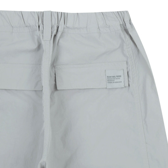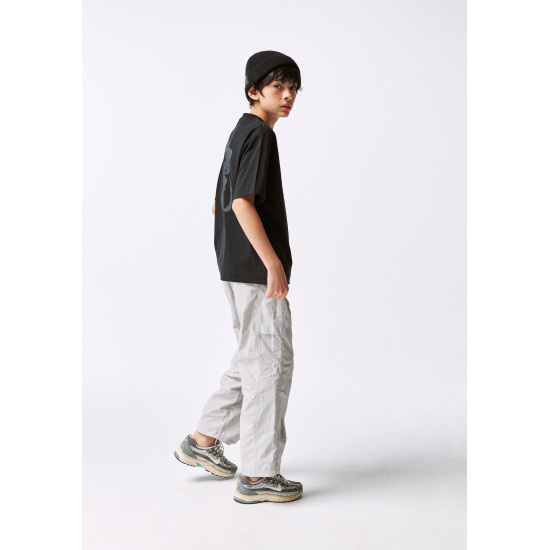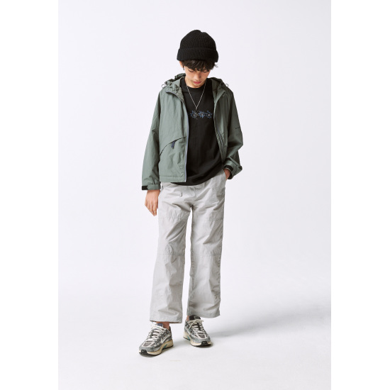 AZA3JP04LG와 셋업인 라이트그레이 배기핏 화섬 팬츠입니다. 전체 통고무줄로 편안하게 제안하였습니다. 와이드한 스타일로 힙한 간지를 연출할 수 있고 밑단 스트링을 조여서 조거로도 스타일링 할 수 있습니다. 무릎에 여유가 있어 아이들이 활동하기에도 좋고 미니멀한 포켓 디테일이 멋스러운 팬츠입니다. 벨트 고리에 체인이나 키링등을 자유롭게 끼워 고프코어룩을 연출할 수 있습니다.