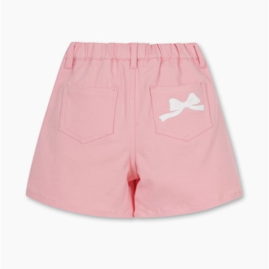 뒷 포켓에 리본 자수 디테일로 포인트를 더해 줌.