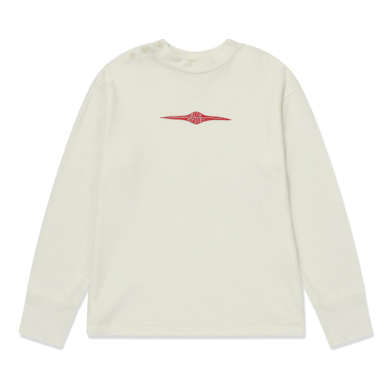 넥 부분에 단추 디테일을 준 화이트 컬러 슬림핏 긴팔 티셔츠입니다. 적당히 슬림하게 떨어지는 실루엣으로 날씬해 보이는 효과가 있으며, 약간 올라온 넥과 긴소매로 레이어드하기에도 용이해 다양한 스타일링을 할 수 있는 상품입니다. 작지만 임팩트 있는 나염과 뒷넥 아래 레터링 나염으로 포인트 주었습니다.