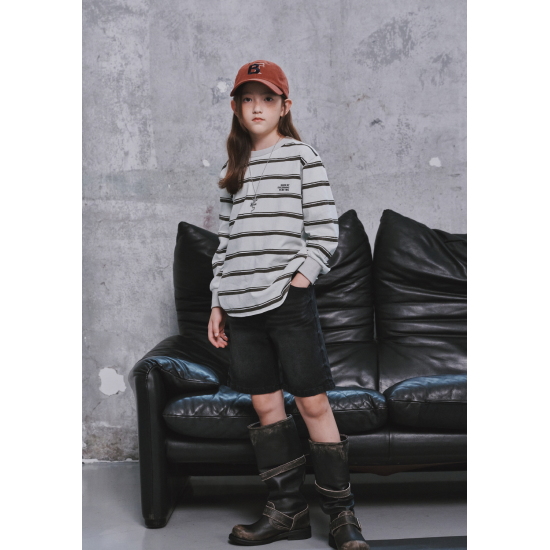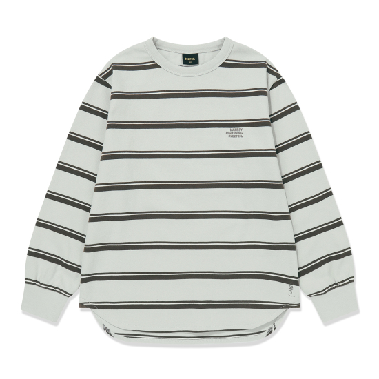센서티브한 민트와 딥한 브라운 컬러의 스트라이프 티셔츠입니다. 상동과 어깨가 넓지 않은 핏되는 스타일의 중성적인 스타일이 돋보이는 아이템입니다. 밑단의 테이프와 미니멀한 레터링 자수로 컬러포인트를 주었습니다.