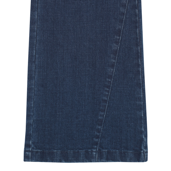 와이드에 가까운 벨버틈 라인의 딥한 인디고 컬러 데님 팬츠입니다. 사이드에 삼각으로 절개를 더해 라인감을 살려준 디자인의 상품입니다. 벨트 고리와 동전 포켓, 뒤 포켓에 인디핑크 바텍을 주어 컬러 포인트를 더했습니다.