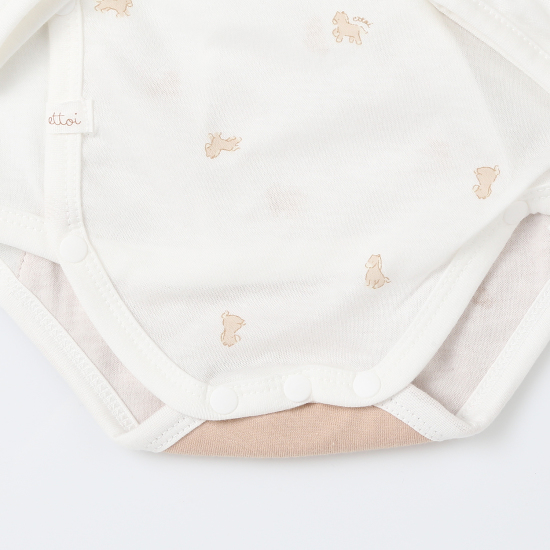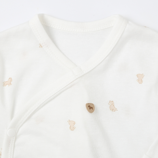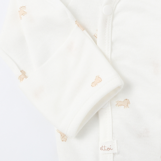 부드러운 면100수 소재의 아기자기한 말 포인트로 귀여움을 주는 배내수트 입니다.