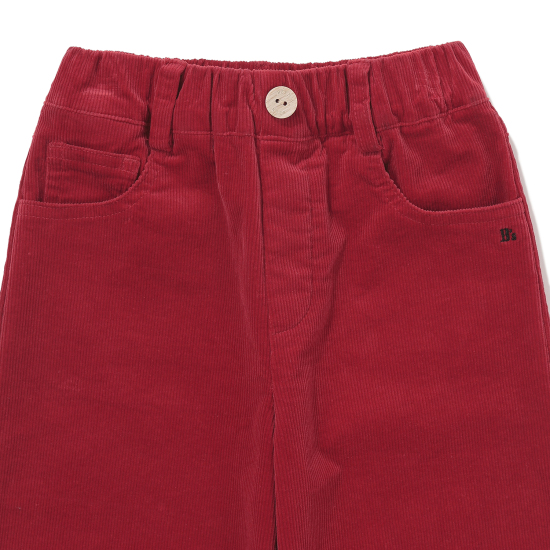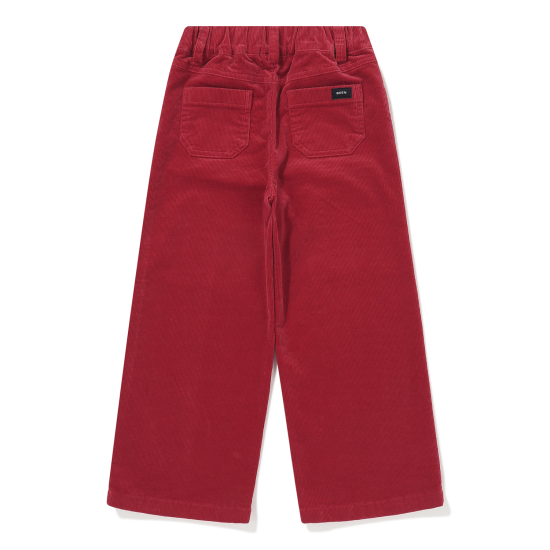 선명한 컬러가 돋보이는 레드 컬러의 코듀로이 일자 팬츠입니다. 미니멀하게 떨어지는 일자 라인이 시크하고 고급스러운 이미지를 연출해줍니다. 아이보리 컬러 풀오버, 블랙 퍼 코트와 함께 입어 시크한 여아 스타일링을 제안하거나, 라이트 그레이 컬러의 풀오버와 함께 입고 퀼팅 베스트와 스타일링하여 세련된 분위기의 캐주얼한 스타일링을 제안할 수 있습니다.