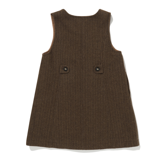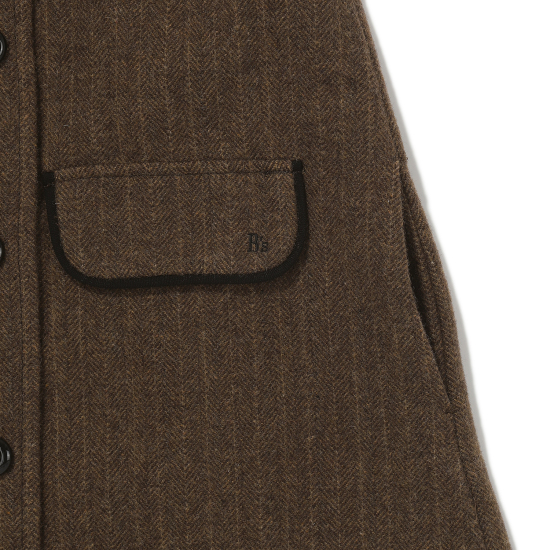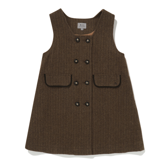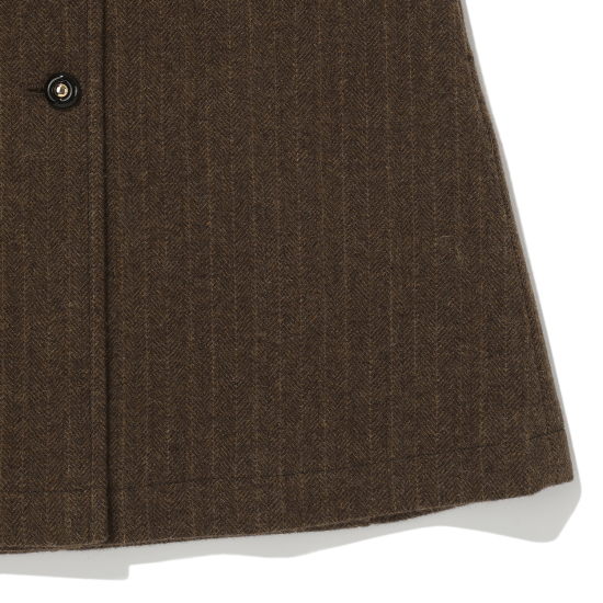 브라운 헤링본 조직의 컬러가 고급스러운 분위기를 더해주는 울 소재의 점퍼스커트 원피스 아이템입니다. 단추 여밈으로 클래식한 분위기를 연출하며, 전체 오픈되어 다양한 스타일링으로 연출할 수 있습니다. 블랙 컬러의 배색 디테일이 세련된 분위기를 더해주며, BZ62TS02SB 또는 BZ62TS01LG와 같은 은은한 컬러감의 이너를 입고 블랙 노카라 핸드메이드 자켓과 셋업하여 고급스러운 스타일링을 제안합니다.