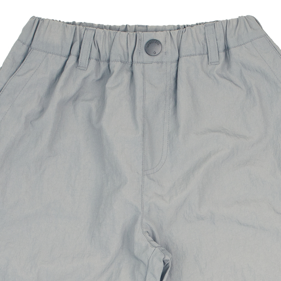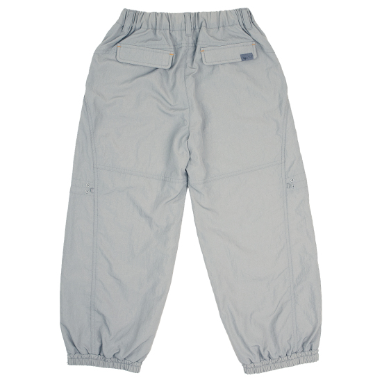 고시감 있는 나일론 겉원단에 기모 안감을 넣은 라이트 그레이 컬러 아웃도어 화섬 팬츠입니다. 힙한 무드의 와이드 조거핏으로 제안하였고 전체 통고무줄로 편안하게 착용할 수 있습니다. 바지 앞뒤로 곡선 절개가 있어 볼륨감 있는 간지를 연출하기 좋습니다. 라벨과 나염으로 컬러 포인트를 주었습니다.