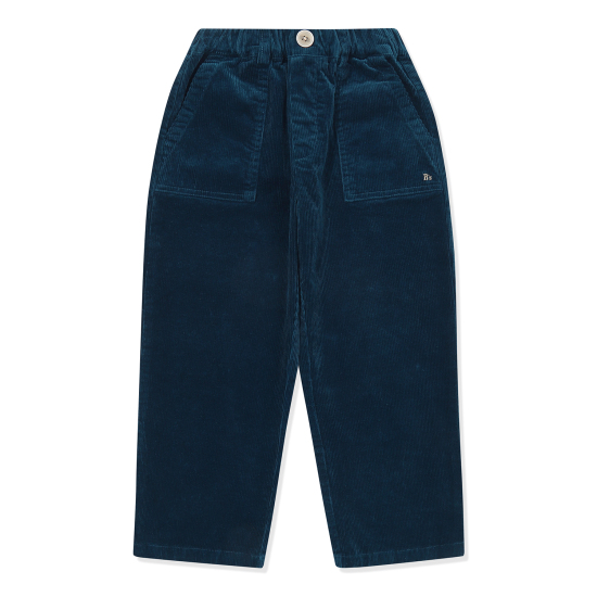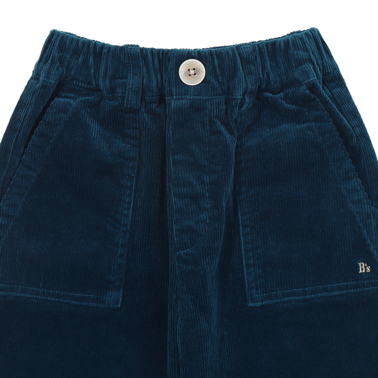 선명한 컬러가 돋보이는 터키 블루 컬러의 코듀로이 팬츠입니다. 시크하게 떨어지는 일자 라인 팬츠 아이템으로 아웃 포켓 디테일과 세련된 컬러감이 포인트가 되는 아이템입니다. 블랙 컬러 패딩 베스트, 블랙 라글란 티셔츠와 함께 매치하여 트렌디한 스타일링을 연출할 수 있습니다.