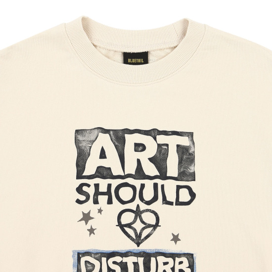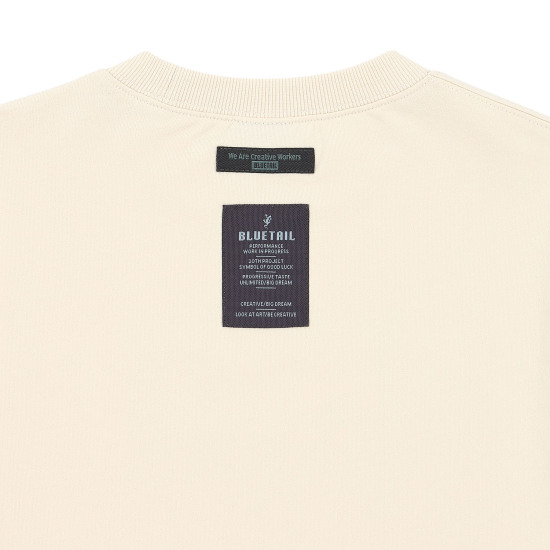에그옐로우 컬러가 화사한 맨투맨입니다. 암홀에서 어깨로 올라가는 유동적인 사선 라인이 입었을 때 멋스럽고 트렌디하게 만들어주는 아이템입니다. 블루테일만의 아트포스터를 연상시키는 레터링을 빈티지하게 나염을 찍어 포인트를 준 상품입니다.