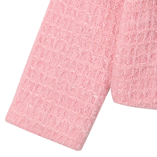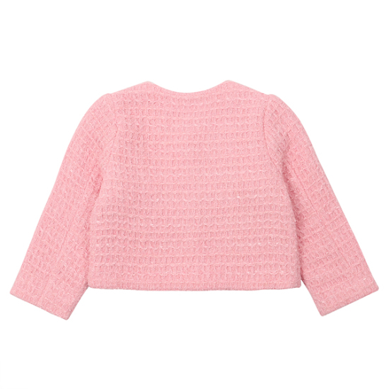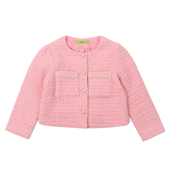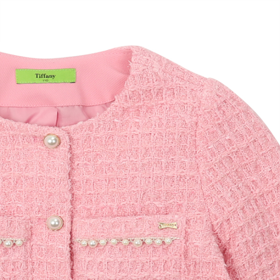 상품설명-밝은 핑크 트위드 소재의 자켓 스타일입니다. 가슴에 빅 포켓과 짅 테잎 장식을 포인트로 준 스타일로, 셋트 스커트(T35KAS020)와 코디하여 연출하기 좋습니다. 부츠컷 데님 팬츠나 다이마루 팬츠와 코디하여 트렌디하게 연출 가능합니다.