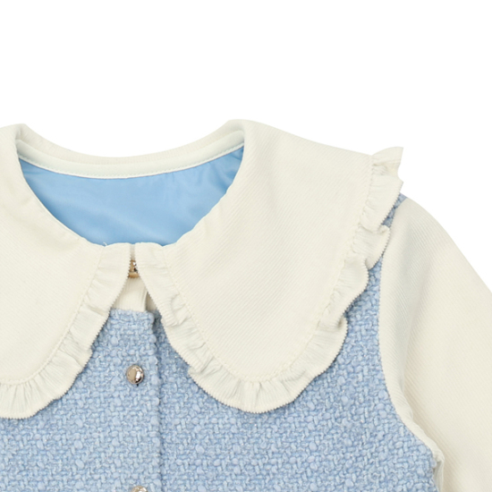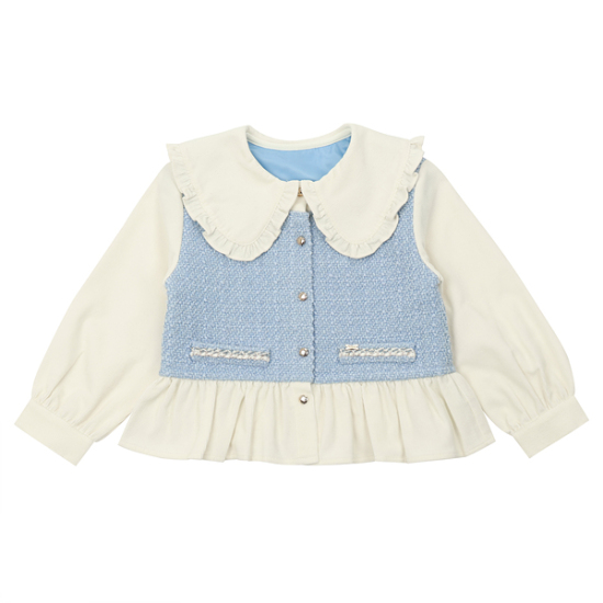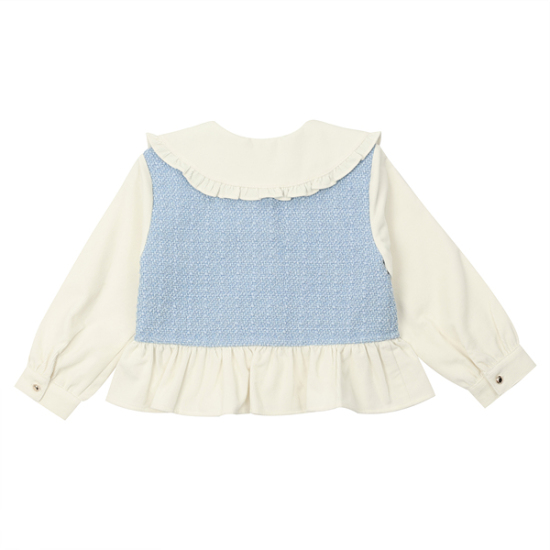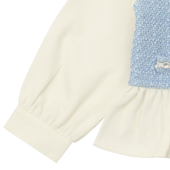 상품설명-골덴블라우스에 트위드 배색이된 뷔스티에 스타일의 블라우스로 블라우스 착장하나만으로 유니크함을 줄수있는 아이템으로 하의는 스커트나 데님팬츠랑 같이 코디하실수 있습니다.