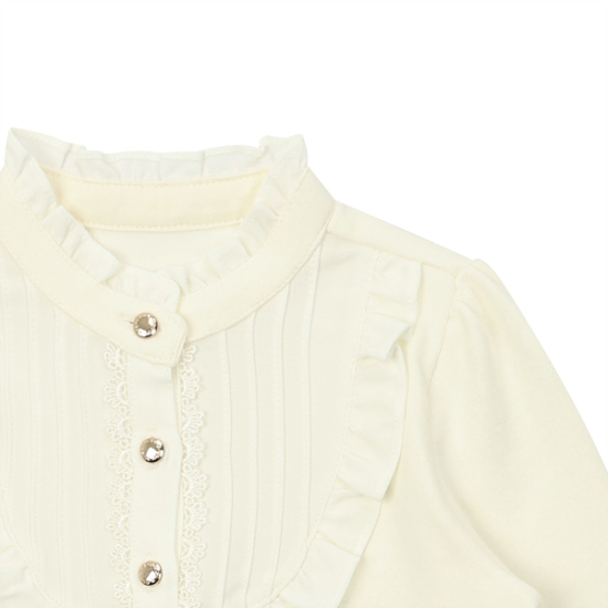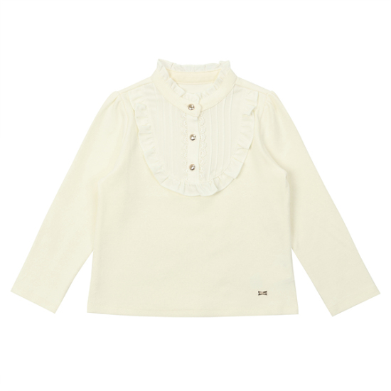 상품설명-깔끔한 프릴 핀턱디테일의 이너티셔츠로 점퍼원피스나 스커트에 같이 코디하면 좋은 아이템입니다.