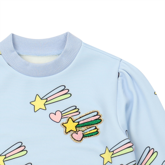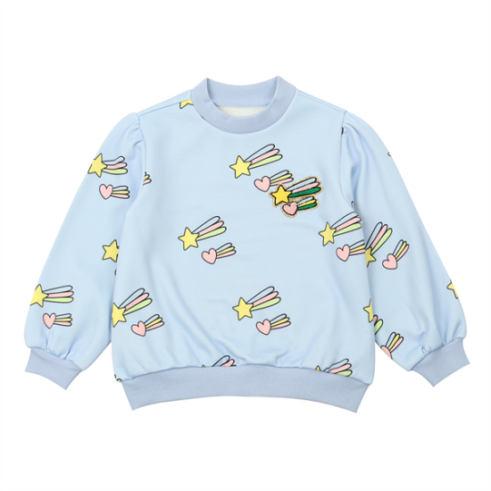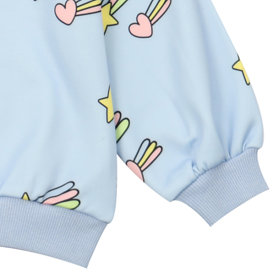 상세설명-귀엽고 유니크한 별하트 전판나염 맨투맨으로 데님팬츠나, 우븐팬츠에 같이 코디하면 좋은 아이템입니다.
