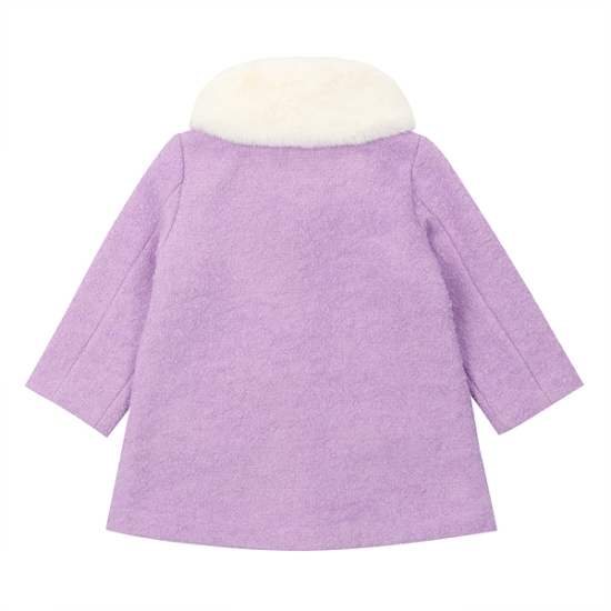 상세설명-캐시미어 포함 소재 포근한 터치감을 주는 보라 코트로 아이보리 퍼 장식 카라로 포인트를 준 스타일입니다.