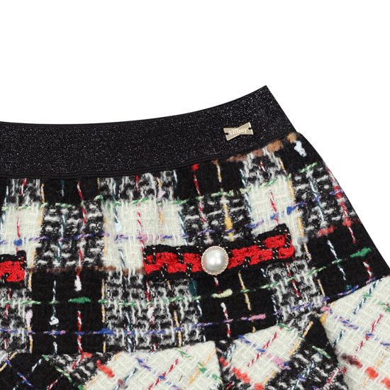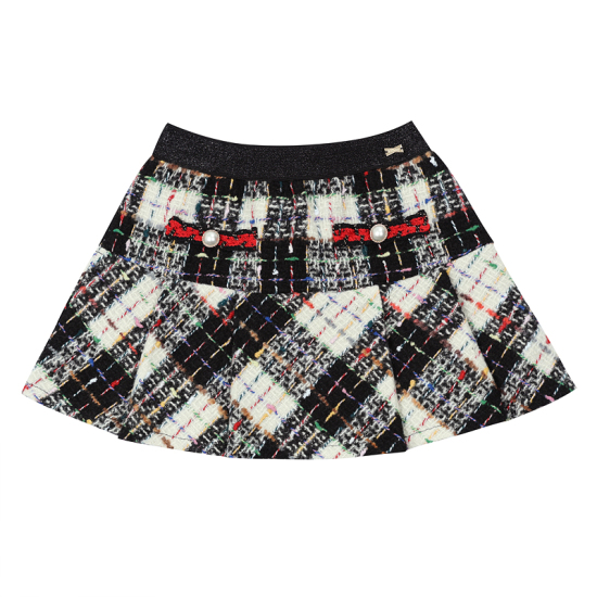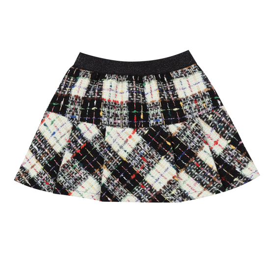 상세설명-다양한 컬러의 멀티사가 믹스된 블랙체크 트위드 원단으로 제작된 스커트입니다.