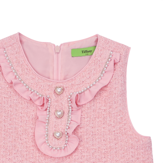 상품설명-은은한 핑크매칭펄사가 믹스된 핑크 트위드 점퍼 SK입니다. 조직감있는 원단 사이에 블링한 펄사가 믹스되었고,