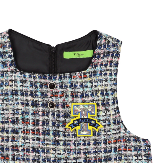 상품설명-고급스러운 트위드 주름 JP/SK스타일로 가슴에 와펜 장식으로 컬러감을 살린 스타일입니다.