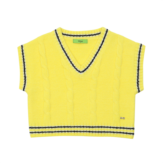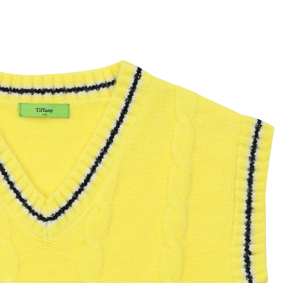 상세설명-옐로우 컬러의 브이넥 케이블 니트로 이너와같이 코디해서 착용하면 좋은 아이템입니다.