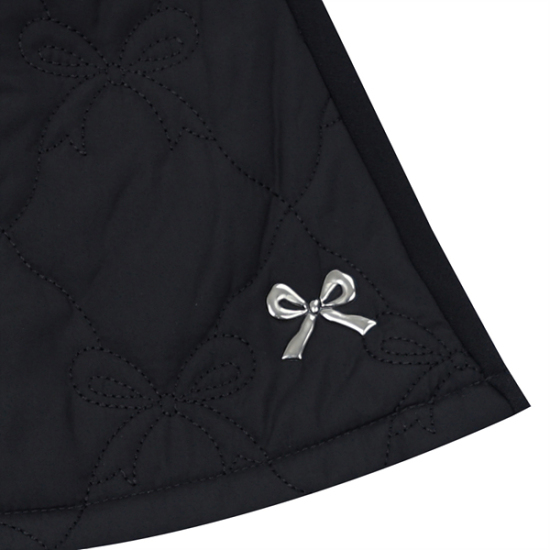 상세설명-트렌드인 화섬 퀼팅 소재를 사용한 스커트입니다. 앞에는 리본 퀼팅 소재를 뒷쪽은 다이마루 기모지를 사용해 착용감을 좋게한 스커트입니다.
