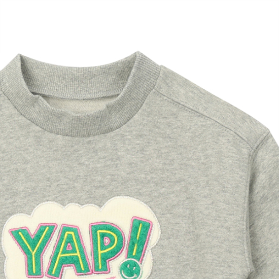 상세설명-스트치 장식과 다트 장식으로 라인에 포인트를 준 티셔츠입니다. 앞에 골지 소재와 퍼 APP 자수로 컬러 포인트를 준 스타일입니다.