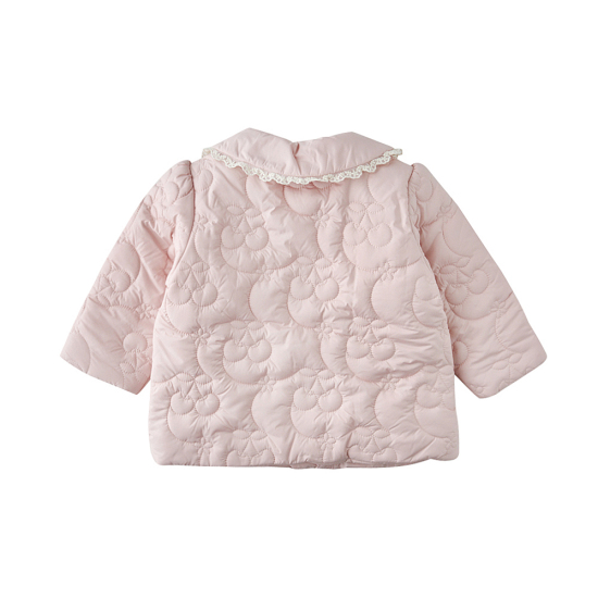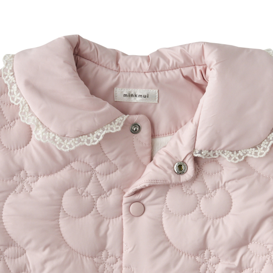 부드러운 핑크 컬러의 체리 퀼팅이 트랜디한 패딩 점퍼입니다.