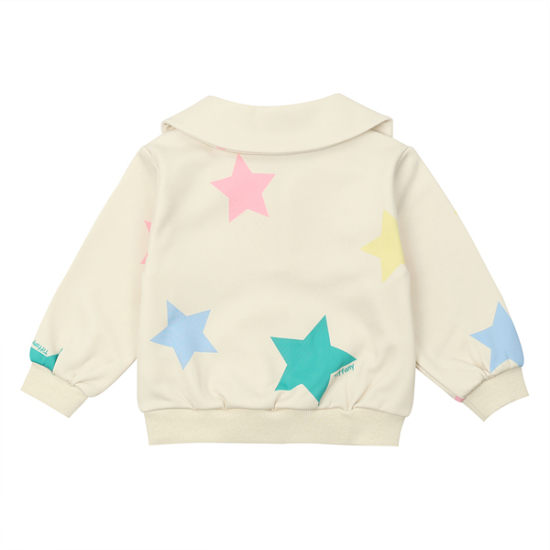 상세설명-컬러감이 톡톡튀는 별전판 집업세트로 유니크한 패턴이 한층 더 러블리함을 더해주며, 카라스타일로 입고 벗기 편한 세트아이템입니다.