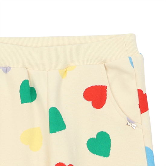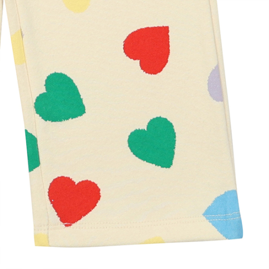 상품설명-멀티 컬러의 하트 전판 나염이 포인트로 들어간 일자 핏 팬츠 입니다. 양기모가 들어간 부드러운 쭈리소재로 따뜻하게 입을 수 있는 아이템 입니다. 상의 (T35KKT070)와 함께 코디 가능합니다.