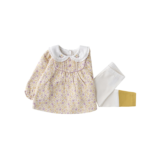 소프트한 옐로우 컬러의 쁘띠 버드 상하복입니다.