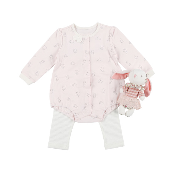 부드러운 면 100 %소재의 바디슈트+레깅스+인형딸랑이SET 입니다.