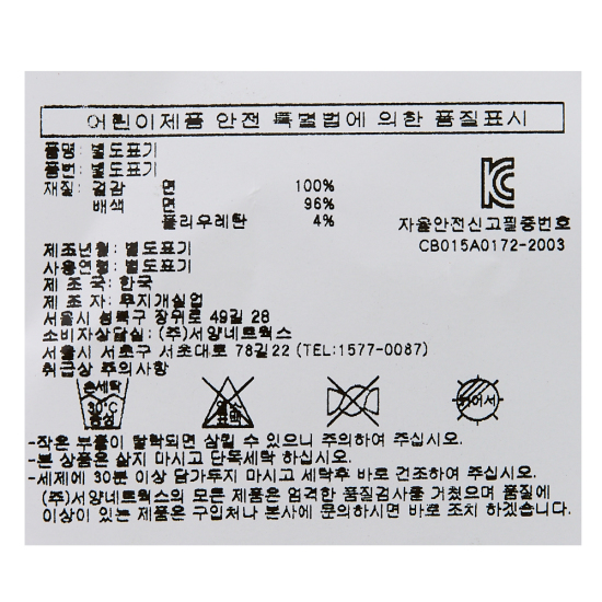 소 재............겉감-면100% / 배색-면96%,폴리우레탄 4%