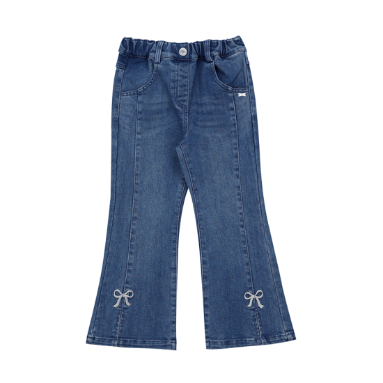 상품설명-실버리본 자수가 귀여운 데님 부츠컷 팬츠입니다. 빽면에 그레이 기모처리되어, 겨울에도 따듯하게 착용가능한 팬츠입니다.