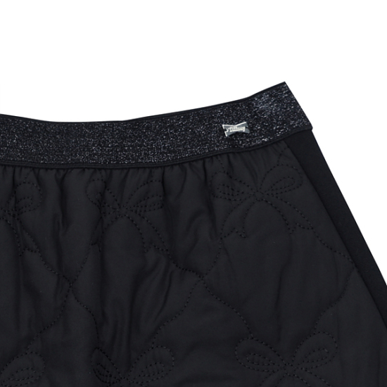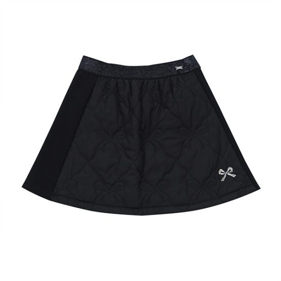 상세설명-트렌드인 화섬 퀼팅 소재를 사용한 스커트입니다. 앞에는 리본 퀼팅 소재를 뒷쪽은 다이마루 기모지를 사용해 착용감을 좋게한 스커트입니다.