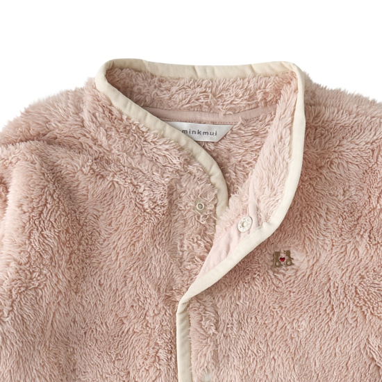 부드러운 퍼 소재를 활용한 우주복+모자 SET입니다. 핑크 컬러 퍼 우주복과 곰돌이 귀가 달린 퍼 모자를 매치했고 아미띠에 뮤 자수로 포인트를 주었습니다. 두께감이 있어 체온조절에 탁월한 아이템이며 캐주얼하게 입힐 수 있어 아기들에게 선물용으로 좋은 아이템입니다.