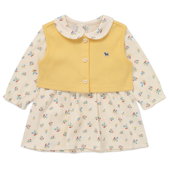 플라워 패턴의 원피스와 골지 소재의 베스트로 구성된 세트 아이템 입니다.