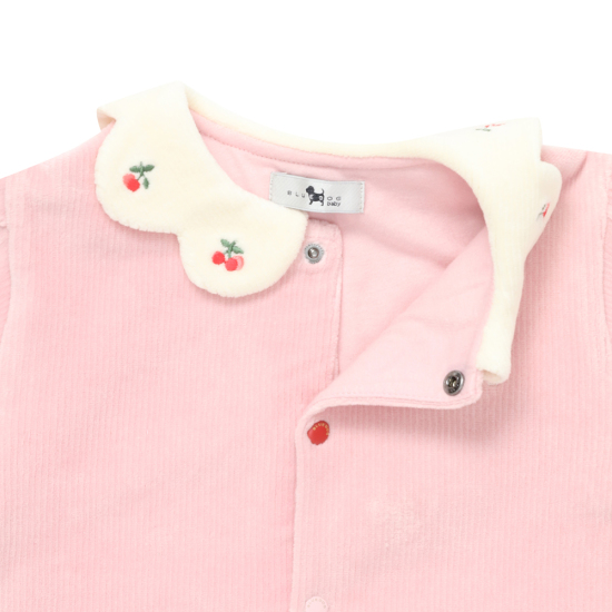 꽃모양 카라 디테일과 자수로 러블리한 스타일 입니다.