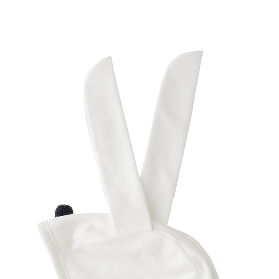 입체 토끼 귀와 폼 폼방울이 포인트인 모자입니다.