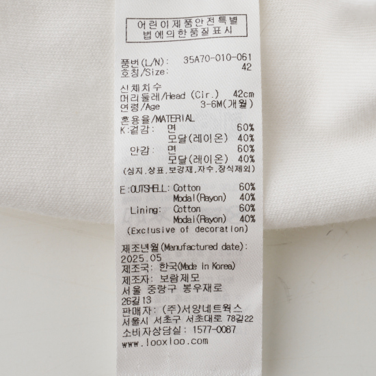 소 재.........겉감-면60%,모달(레이온)40% / 안감-면60%,모달 (레이온)40%